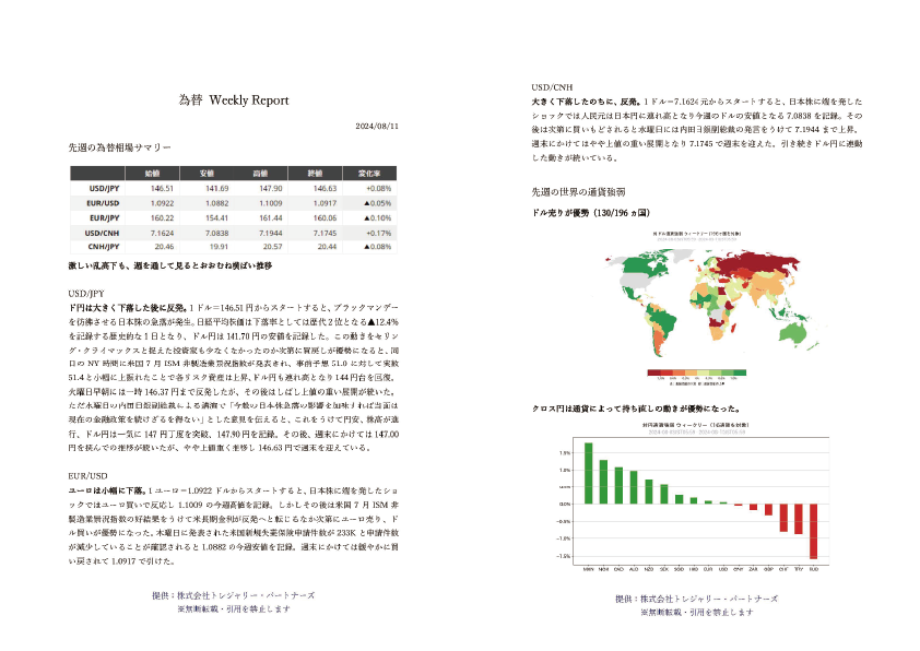 「先週の為替相場サマリー」「先週の世界の通貨強弱」「今週の為替相場の注目点」「今週の注目イベント」