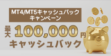 期間中、MT4またはMT5で200ロット以上お取引いただいたお客様に、取引ロット数に応じて最大10万円キャッシュバック!