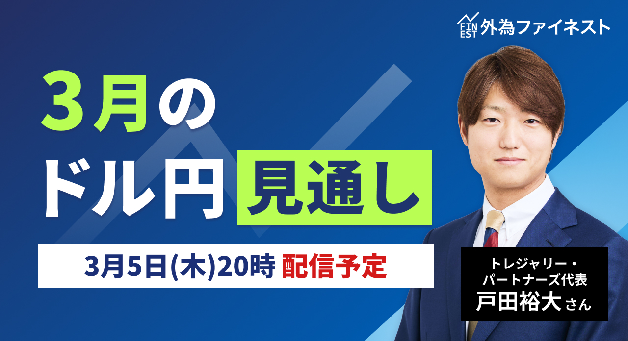 延期となっていた「3月のドル円見通し」の動画配信を、明日3月5日(木)20時に行うことが決定しました。